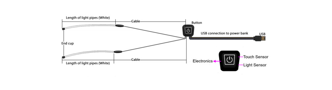 (Beispielbild mit zwei LED-Lichtleiter und textilem USB-Kabel)